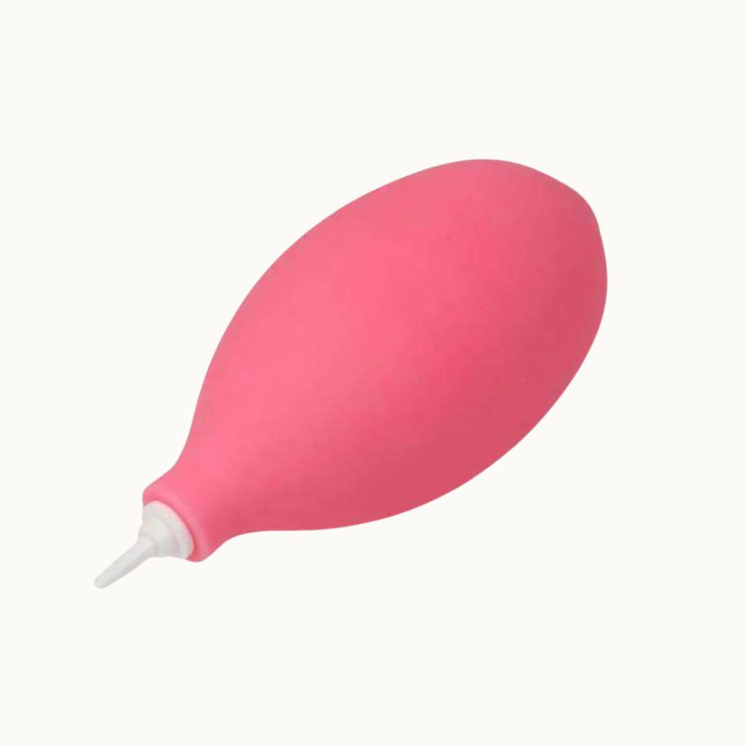 This puffer is a smaller, mini size that fits in your hand perfectly. With a smooth rubber surface, it makes the puffer comfortable and easy to squeeze. Great travel size.